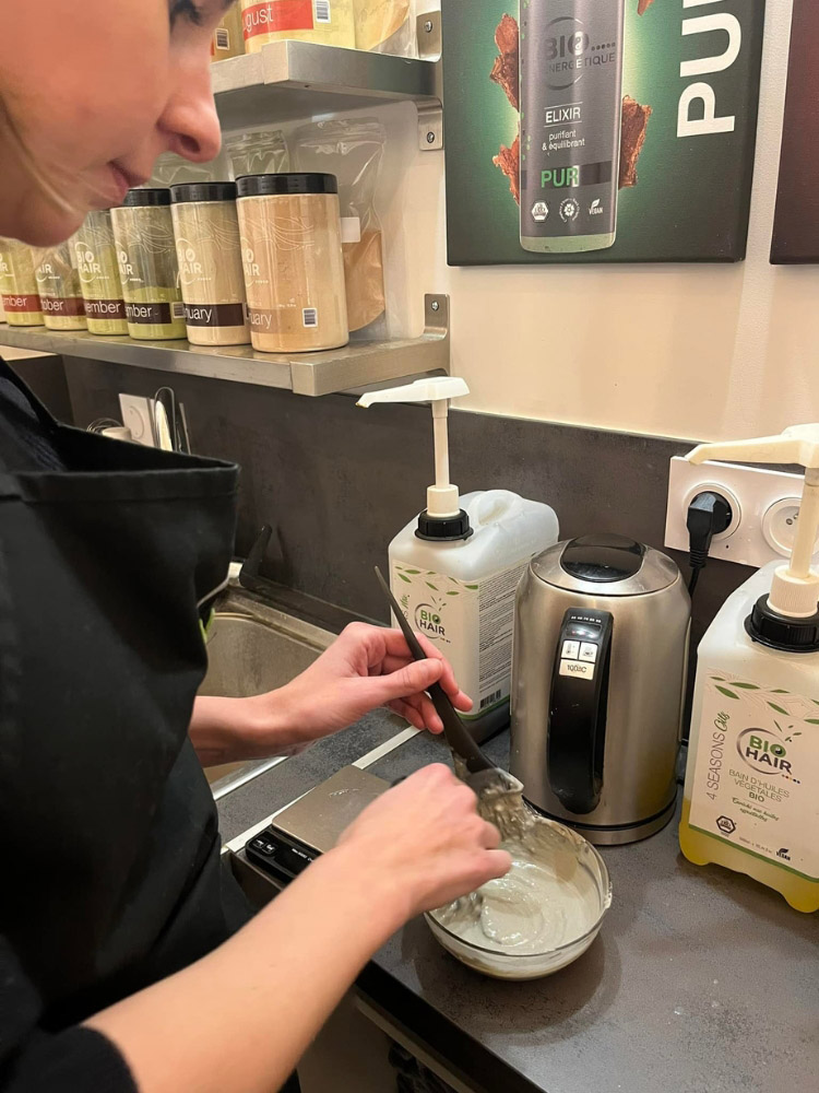 “ Je travaille bientôt depuis 2 ans avec Bio Hair, ça avait été une révélation lors de ma première formation en coloration végétale et depuis ce n'est que d'y bonheur :)”